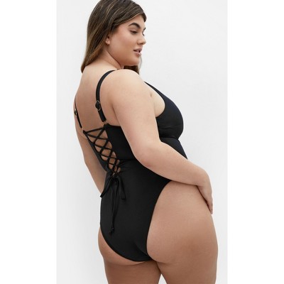 Women's Plus Size Sardinia Tie Front 1 Piece - black | CITY CHIC