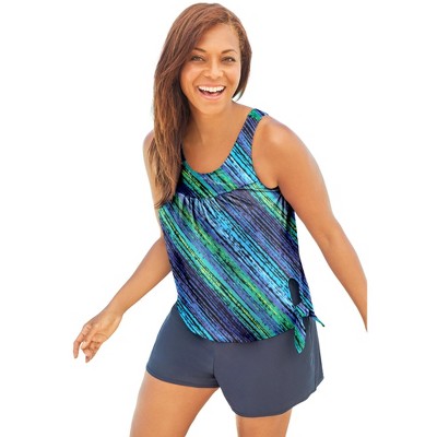 Women's Plus Size 2 Piece Tummy Control Push Up Ruched Tankini Top and Board Shorts Beach Vacation Pool Swimwear Set - Agnes Orinda