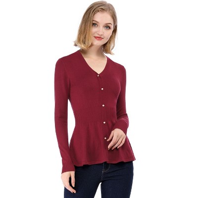 Allegra K Women's Slim Fit V-Neck Long Sleeve Ribbed Pullover Knitted Peplum Sweater