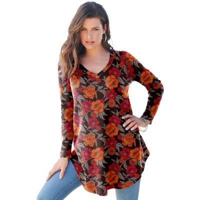 Roaman's Plus Size Knit Thermal V Neck Swing Tunic – Long Sleeve