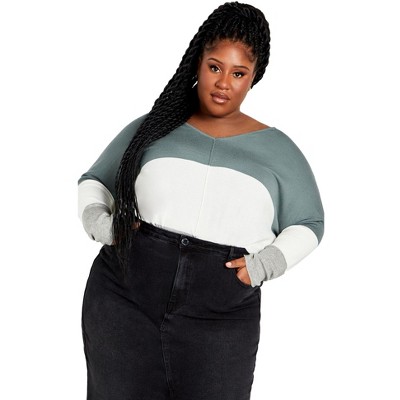 Woman Within Side Button V-Neck Waffle Knit Sweater