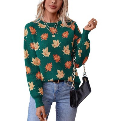 Women’s Casual Leopard Print Knitted Pullover Sweaters Long Sleeve Crew Neck Jumper Tops