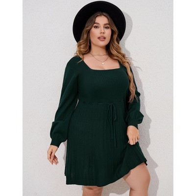 Plus Size Sweater Dress Long Lantern Sleeve Tie Waist Sweater Dresses