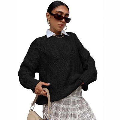 Long Sleeve Solid Sweater For Women Crew Neck Vintage Pullover Knit Sweater Tops