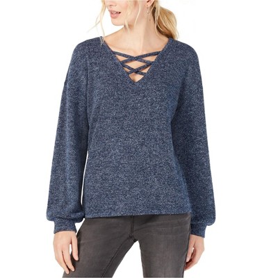 I.N.C International Concepts Womens Criss-Cross Front Pullover Sweater, navy, Small