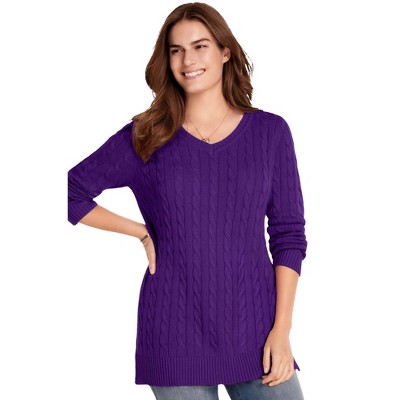 Woman Within Cable Knit V-Neck Pullover Sweater
