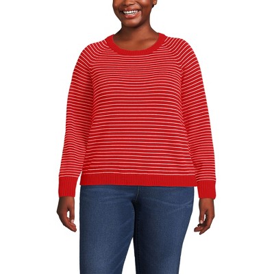 Lands' End Women's Drifter Jacquard Raglan Crew Neck Sweater