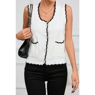 V For City Women's Contrast Trim Scallop Edge Knit Vest Cardigan Sweater For Winter