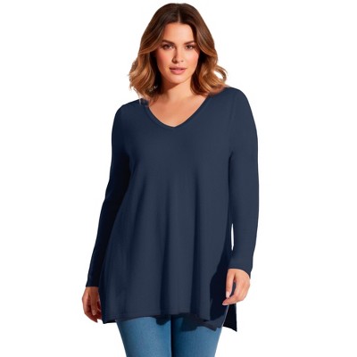 Jessica London Pullover Collared Lace Up Shaker Sweater