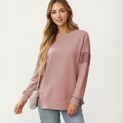 Anna-Kaci Women's Crew Neck Long Sleeve Pullover Top with Colorblock Sleeve Detail
