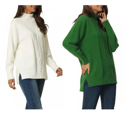BLUEMING Women's Asymmetry Striped Cape Knit Sweater Top - Relaxed Batwing Sleeve Mock Neck Pullover