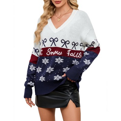 Ugly Christmas Sweater for Women Crew Neck Knitted Pullover Reindeer Snowflakes Sweaters for Xmas Holiday