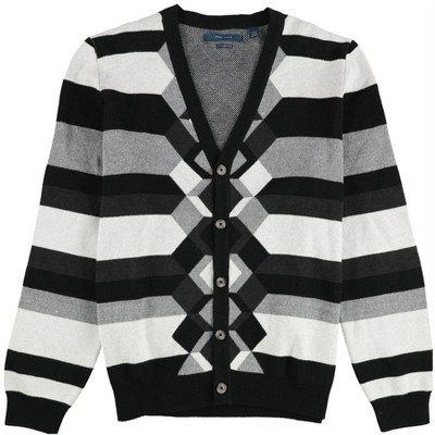 Perry Ellis Womens Square Smocked Hem Crochet Cardigan Sweater