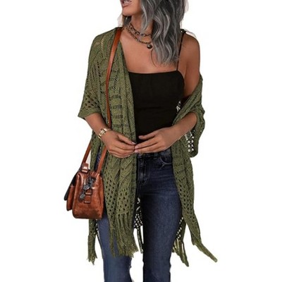 Zeagoo Womens Knit Cardigan Open Front Outwear Hollow Out Crochet Tassel Lightweight Kimonos Sweater
