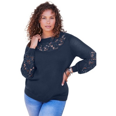 Roaman's Lace Sleeve Sweater