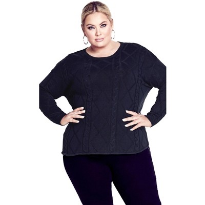 Woman Within Cable Knit Half-Zip Pullover Sweater