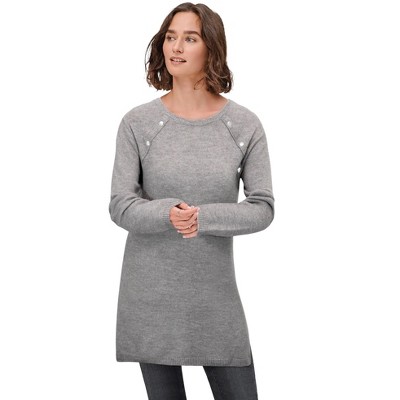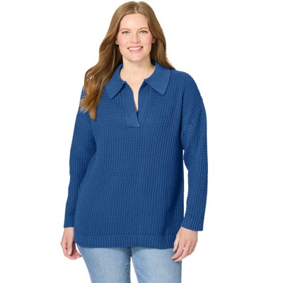 Woman Within Side Button V-Neck Waffle Knit Sweater