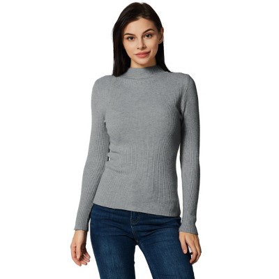 Lightweight Ribbed Mock Turtleneck for Women-Slim Fit