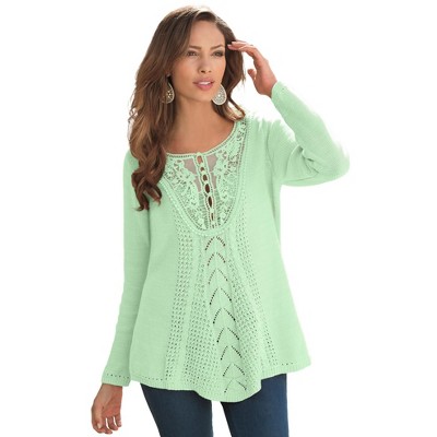I.N.C International Concepts Womens Lace Shoulder Pullover Sweater, green, Large