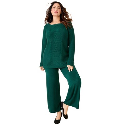 Woman Within Cable Knit V-Neck Pullover Sweater