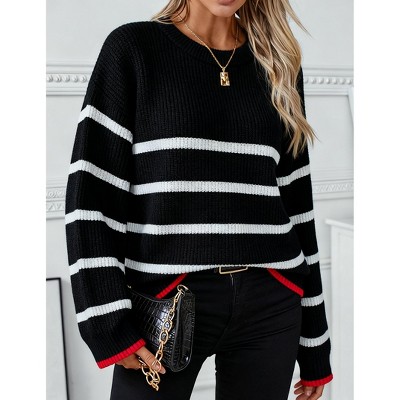 Anna-Kaci Women's Contrast Button Detail Knit Sweater
