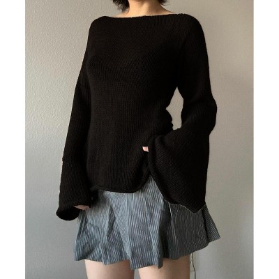 Women's Bell Sleeve Knit Top - Sexy Back Tie Detail Loose Fit Cropped Sweater for Date Night & Fall (S-L)