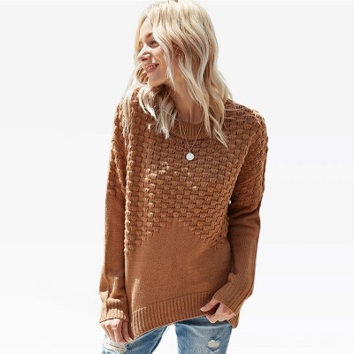 Womens Textured Knit Pullovers Crew Neck Long Sleeve Sweaters Basketweave Stitch Texture Fall Chunky Sweaters Trendy Fashion Outfits