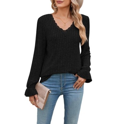 V Neck Long Sleeve Shirts for Women Casual Fall Tops Lightweight Tunic Sweaters Fashion Clothes 2025