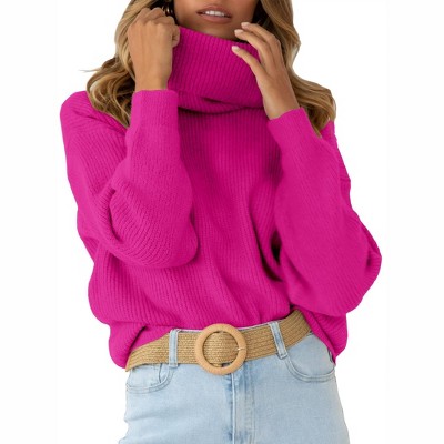 Womens Pullover Turtleneck Sweater Ribbed Knit Sweater Long Sleeve Chunky Sweater Loose Fit Knitwear Pullover Jumper Tops