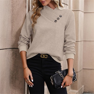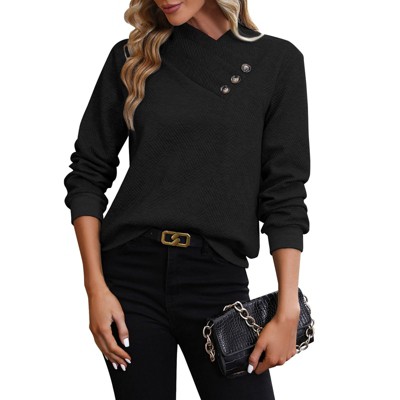 Button Detail Pullover Sweatshirt - Women's Basic Long Sleeve Casual Top