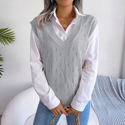Women's Fall Casual Hollow Out Sweater Knitted Vest Summer V Neck Sleeveless Loose Shirt Solid Color Fashion Top Blouse