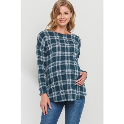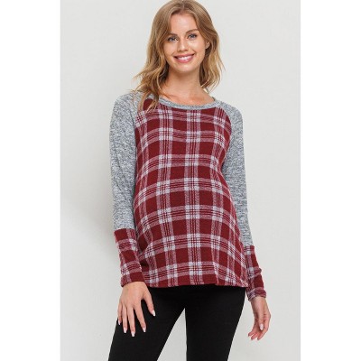 Hello MIZ Womens Plaid Long Sleeve Raglan Maternity Top