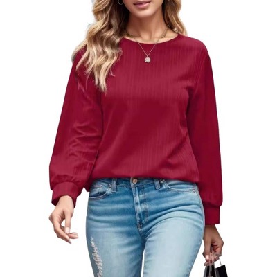 Women's Casual Crewneck Pleated Lantern Long Sleeve Pullover Sweater Loose Ribbed Knit Jumper Tops