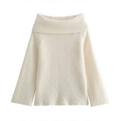 V For City Women's Autumn Winter Off-Shoulder Slim-Fit Solid Color Pullover Sweater