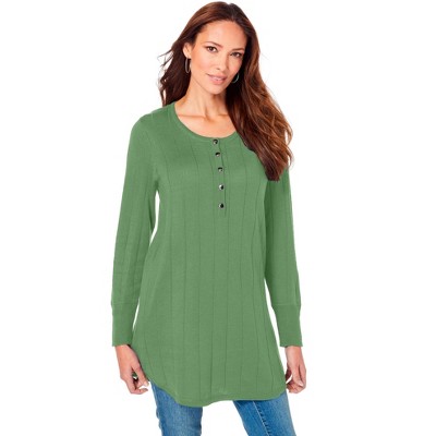Roaman's Plus Size Drop Needle Henley Lightweight Sweater Knit