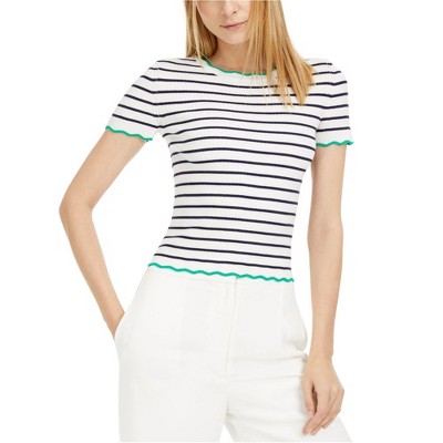 Rachel Roy Womens Back Cut Out Striped Pullover Sweater