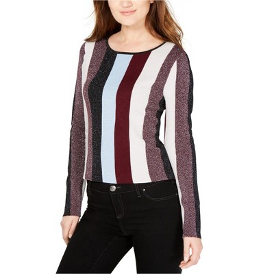 I.N.C International Concepts Womens Metallic Stripe Pullover Sweater, mediumred, X-Large