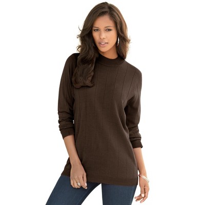 Roaman's Plus Size Drop Needle Mockneck Lightweight Sweater Knit