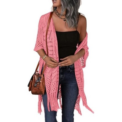 Zeagoo Womens Knit Cardigan Open Front Outwear Hollow Out Crochet Tassel Lightweight Kimonos Sweater
