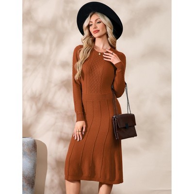 Womens Long Sleeve Casual Dress Fall Ribbed Knit Sweater Crewneck Midi Wedding Guest Dresses