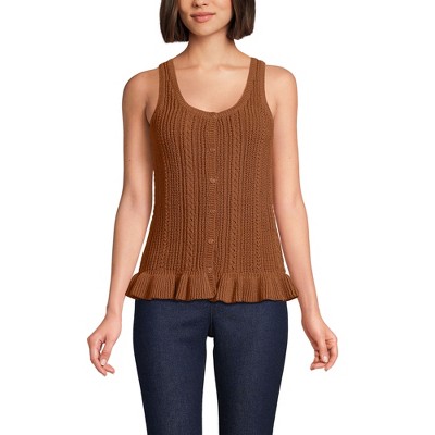 Lands' End Women's Cotton Boucle Ruffle Hem Sleeveless Sweater