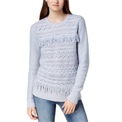 Kensie Womens Fringe Trim Knit Sweater