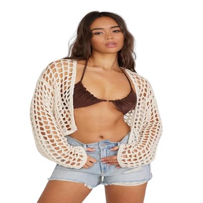 Women Summer Fall Casual Sweater Cardigan Short Sleeve Button Down Ribbed Knit Crop Top Crew Neck Loose Fit Shirt Blouse
