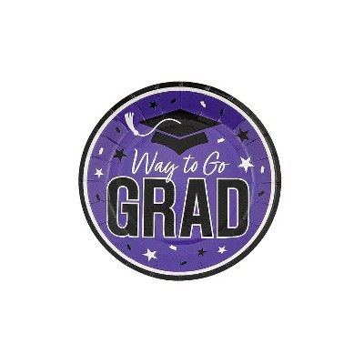 Fun Express 7 1/4" Purple Way to Go Grad Disposable Paper Dessert Plates - 25 Ct.