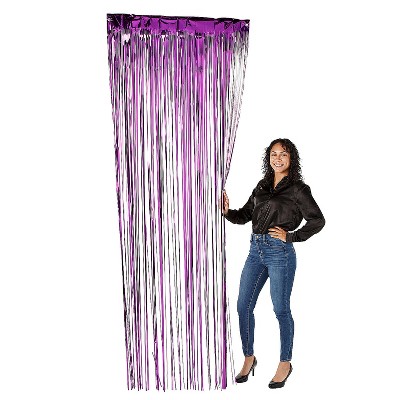 3 ft. x 8 ft. Purple Ready-to-Hang Metallic Foil Fringe Curtain