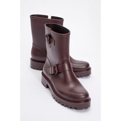 Women's Black Rubber Rain Boots Harness Motocycle Mid-calf Black