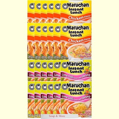 Maruchan Ramen Instant Cup Noodles 24 Count - 12 Chicken Flavor & 12 Lime Chili Shrimp Flavor , 2 Flavors