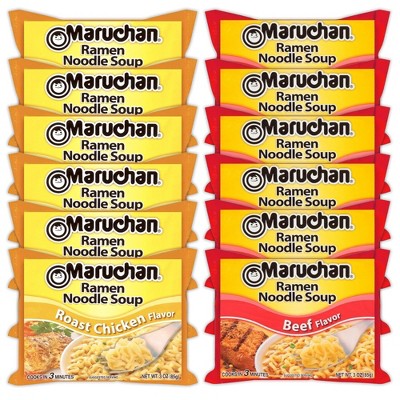 Maruchan Ramen Instant Noodle Soup Variety, 2 Flavors - 6 Packs Chicken & 6 Packs Roast Beef, 3 Ounce Single Servings