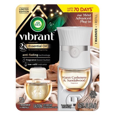 Air Wick Scented Oil Air Freshener Vibrant Starter Kit - 1 Warmer + 1 Refill Warm Cashmere & Sandalwood