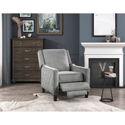 GDFStudio Mendota Mid Century Modern Fabric Channel Stitch Wood Pushback Recliner